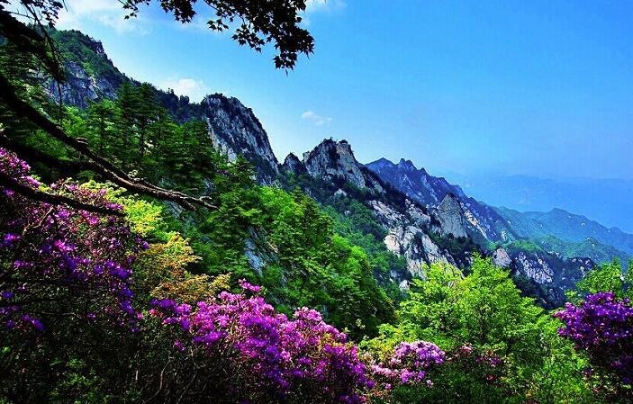 從山門乘上觀光車可以欣賞沿途的玉蘭、紫荊花、山桃花,至迎風樹,乘堯山索道至二道崖,可以欣賞南觀景臺至攬勝臺沿線的紅杜鵑,登上主峰玉皇頂到壽松,可以欣賞沿線的“杜鵑長廊”的高山的杜鵑花海。