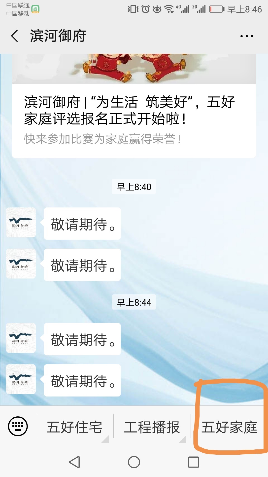 關注“濱河御府”微信公眾號,點擊菜單欄“五好家庭”,投上您寶貴的一票!