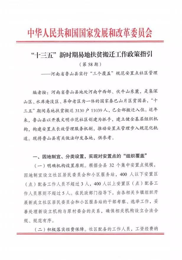 魯山縣易地扶貧搬遷后續管理經驗在全國推廣,現原文轉發。