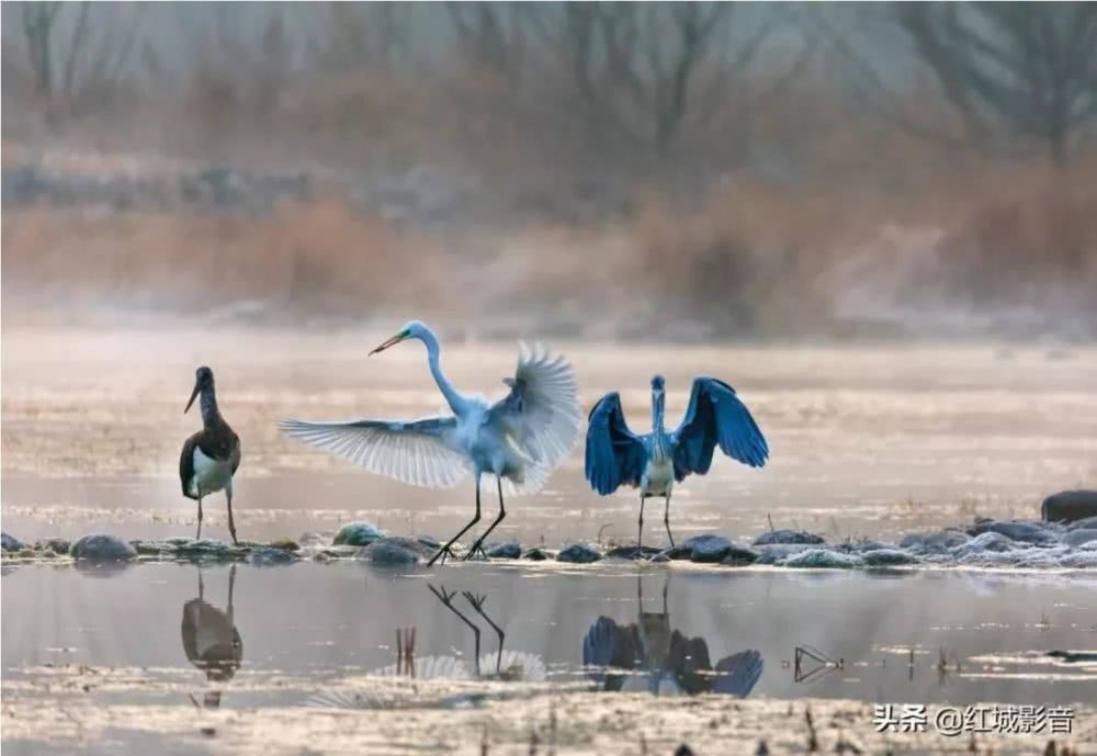 伏牛山魯山縣泉水灣河畔,每年冬季總會有遠道而來的黑鸛光臨,從而讓更多各地的攝影人熱切期待和向往。