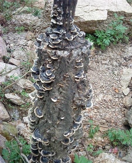 木樁上長出來的,不知道是什么,木耳嗎?呵呵 不知道啦