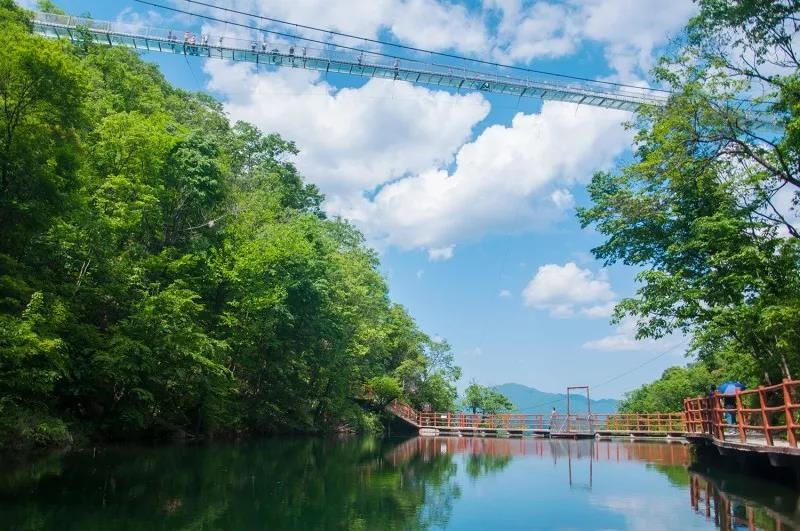 天龍池風(fēng)景區(qū)位于東經(jīng)112.32北緯33.76 海拔1600米的高山之中,景區(qū)內(nèi)植被覆蓋了高達(dá)99%,得益于豐富的植被覆蓋,景區(qū)內(nèi)不僅處處皆蔭涼,氧氣中還富含豐富的負(fù)離子,素有“天然氧吧“之稱。景區(qū)內(nèi)溪流密布,豐水期時(shí)更是處處可聞聽溪水潺潺。每當(dāng)夏季到來,景區(qū)內(nèi)溫度適宜,清爽無比。走進(jìn)景區(qū),不僅能感受綠意闌珊,聆聽山泉叮咚,又能呼吸富含負(fù)離子的氧氣,沉醉美景之中,感受自然的清新與魅力。天龍池風(fēng)景區(qū)結(jié)合景區(qū)自然優(yōu)勢(shì)打造了216米高空玻璃天橋和366米高山品質(zhì)滑道。天龍池玻璃橋橫跨峽谷之間,跨度達(dá)216米、距谷底深126米,玻璃橋主橋體全玻璃結(jié)構(gòu)的設(shè)計(jì),讓每一個(gè)行走在橋上的游客都能感受到凌空漫步的驚險(xiǎn)和刺激。天龍池366米高山品質(zhì)滑道依山坡走勢(shì)而建,滑道共有17個(gè)彎道,每個(gè)彎道坡度角度均有不同,滑下滑道,穿越山澗之間,更是能體味美妙樂趣。