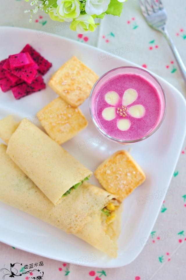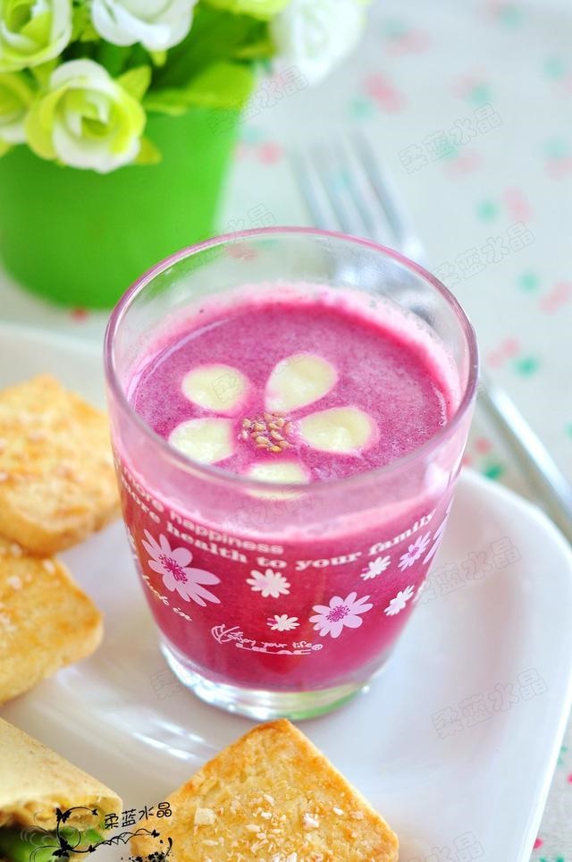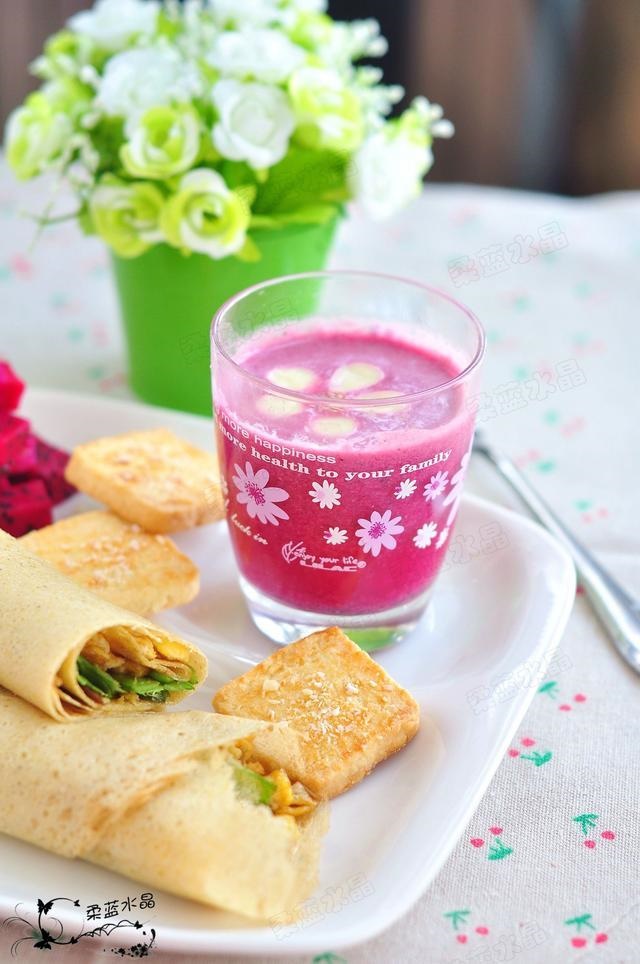 2.如果想讓豆漿的顏色變成玫紅色,紅心火龍果一定要多放,或者另將一部分紅龍果肉與豆漿混合攪打。