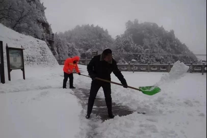 為了能讓游客欣賞到堯山雪景,工作人員正在冒雪清理游覽步道,游客無需擔心上下山問題,即使下雪也可到達景區(qū)的最佳觀賞點。