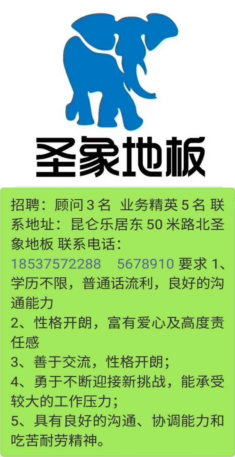魯山圣象地板招店長一名、店員3明、銷售5名