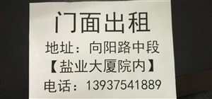 魯山縣向陽路中段鹽業(yè)大廈院內(nèi),門面2間,面積90平米,水電齊全,簡單裝修,有獨(dú)立衛(wèi)生間。