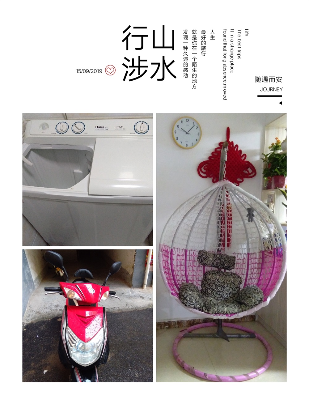 家用三件套,9.5成新8.5公斤海爾半自動洗衣機,9成新 新日迅鷹電動車、9.9成新室內休閑吊籃/秋千,全部出售,好東西不等人,只賣有緣人。