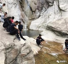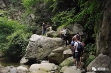 水不深,一路上都可以玩個不停。這里簡直就是小孩子的天堂啊,調皮一點的孩子會在河道中形狀各異的大小石塊上跳來跳去,樂此不疲。在一個不太明顯的叉路口,改道左行,穿過叢林走榆木潭去看“滾油鍋”。“滾油鍋”實際上也就是一個比較大的水潭,自上而下落差很大的瀑布,沖擊到深潭里再翻滾上來,就好像一口燒開了不停翻滾的油鍋,那情景的確壯觀,令人感慨。
