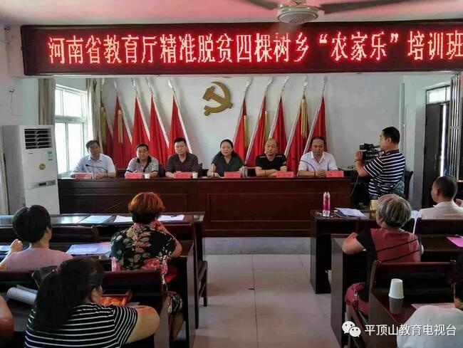 7月24日上午,平頂山市職業教育助力脫貧攻堅“農家樂”培訓班開班儀式在魯山縣四棵樹鄉政府會議室舉行。市教育局副調研員翟瑞安、魯山縣副縣長史曉天等領導參加,四棵樹鄉黨委書記唐海燕主持開班儀式。來自四棵樹鄉的80余名農家樂的從業人員參加此次為時15天的培訓,魯山縣職教中心對此次培訓制定了非常科學精細的安排。