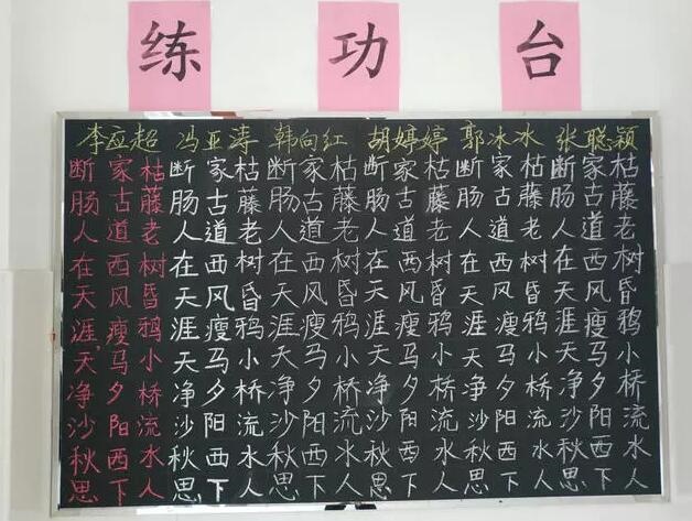為了進一步提高全校教師教學板書水平,增強教師整體素質,新學期開學后,魯陽中學在全體教師中開展了基本功——“粉筆字”練習活動,要求工作日期間,無論再忙,每位教師每天都必須抽出幾分鐘時間,到粉筆字練功臺前完成自己的書寫任務,并將此活動作為該校的特色工作,持久進行下去。目前,該項工作已經持續了兩周。