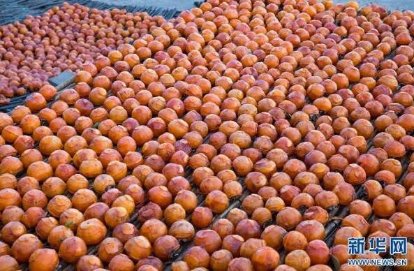 10日28日,河南省魯山縣瓦屋鎮(zhèn)紅石崖村百余棵柿樹掛滿了果實,成熟的柿子如顆顆寶石圓潤晶瑩,香甜美味,據(jù)村民李勝利介紹,今年已摘下柿子被加工成柿餅、柿干,近2萬余斤,等待八方客商品嘗收購。新華網(wǎng)發(fā)(郭東偉 攝)