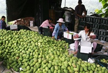 “去年的路還沒那么爛,老板一波接一波地來,今年路實在太爛了,一些收果的老板拼命地往低壓價,而大部分老板更是直接拒絕來收果。”一名女司機說,這路爛了5年沒人修。途中泥石流也沒人前來處理。圖為果農處理芒果。