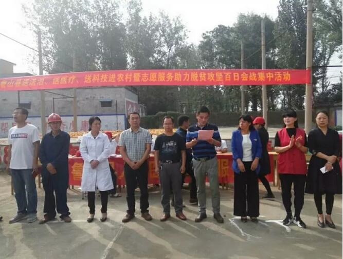9月29日上午,共青團魯山縣委、縣文明辦組織縣醫院、縣司法局、縣科協、魯山職教中心、國網魯山縣供電公司、愛心之家魯山分會、馬樓二中等單位青年志愿者到馬樓鄉沙渚汪村開展送醫療、送衛生、送科技進農村暨志愿服務助力脫貧攻堅百日會戰集中活動。