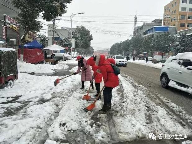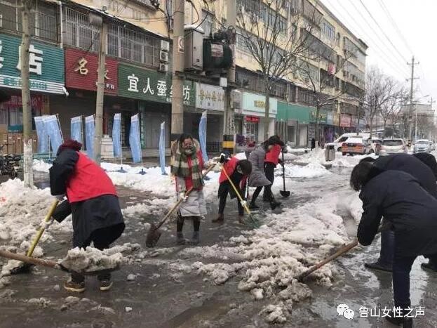 一場大雪把整個世界裝扮得銀妝素裹,分外妖嬈。但驟降的大雪引起了大面積路面積雪積冰,給廣大居民出行帶來了安全隱患。為了方便居民出行,保障出行安全,魯山縣婦聯積極組織廣大巾幗志愿者對道路積雪進行清掃。