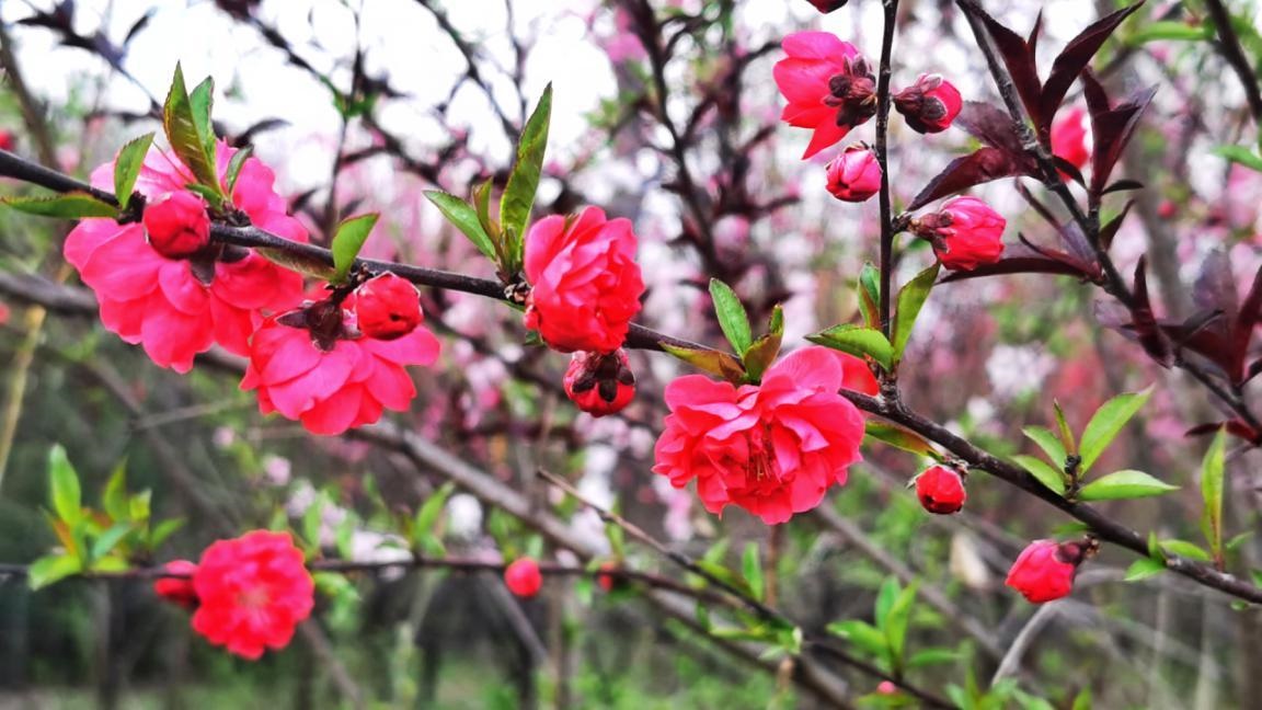 公路兩側、山村鄉野、河岸池中被春風輕撫過后,經過一個冬天的等待,盛開的梨花、桃花、辛夷、紅梅、紫荊、油菜花搖曳在春風里,好似春天的使者,為人們帶來了春的氣息。
