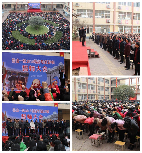 春寒料峭,豪情洋溢,滿懷希望,2018年2月26日,魯山一高2015級(jí)2018屆高三全體師生齊聚2號(hào)教學(xué)樓,隆重舉行2018年高考百日沖刺誓師大會(huì)。縣政協(xié)副主席,魯山一高校長、黨委書記牛山坡出席會(huì)議并講話。