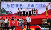 公益堯山,溫暖啟航,7月30日上午,雨過天晴,“旅游扶貧 堯山在行動”愛心慈善公益活動在堯山風景名勝區隆重舉行。平頂山市旅游局局長張風嶺、魯山縣旅游局局長陳立新、四棵樹鄉人民政府鄉長段雪楓、平頂山旅游局駐沃溝村第一書記張雁斌,天瑞旅游集團股份有限公司副總經理徐大川、河南省自駕游護照發行中