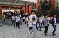 為紀念5.12汶川大地震9周年,進一步提高師生防震減災意識,2017年5月12日上午,魯山一高組織學生進行了校園防震減災疏散演練。(圖為演練現場