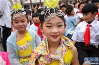 5月23日,河南省魯山縣魯陽小學舉行迎六一“童心如歌”合唱比賽,共30個班級2000多名小學生參加。孩子們的笑臉象陽光一樣燦爛,孩子們的心情比鮮花還要絢麗。歡樂的孩子用載歌載舞與歌聲笑聲迎接自己的節日。新華網發( 郭東偉 攝