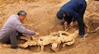 一天早上,我騎著摩托車到鎮子上去賣大米,剛一出村口,就看見好多人圍在一起,我透過人縫就看見帶血的骨頭,我想著不會是有什么刑事案件吧?因為最近恐怖分子還是很猖獗的。我停好摩托車走近一看,我都不敢相信自己的眼睛,地上擺著一副龍骨!駱駝頭,鹿角,蛇身,鷹爪,還有四只腳,說不是龍,我自己都不相信!我問旁